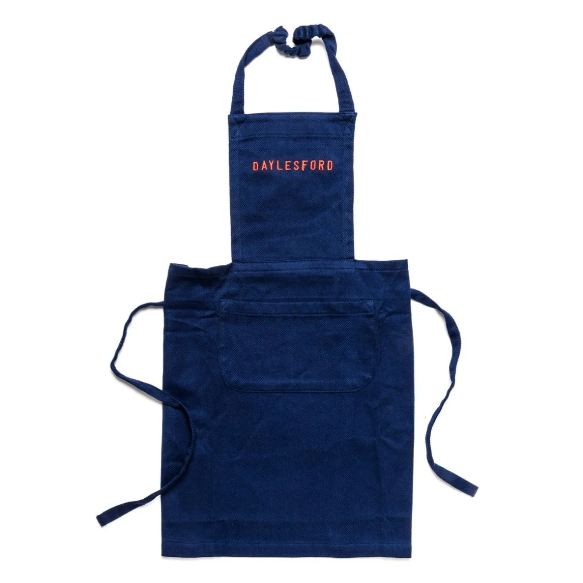 In a durable blue fabric with a handy front pocket and adjustable tie straps.