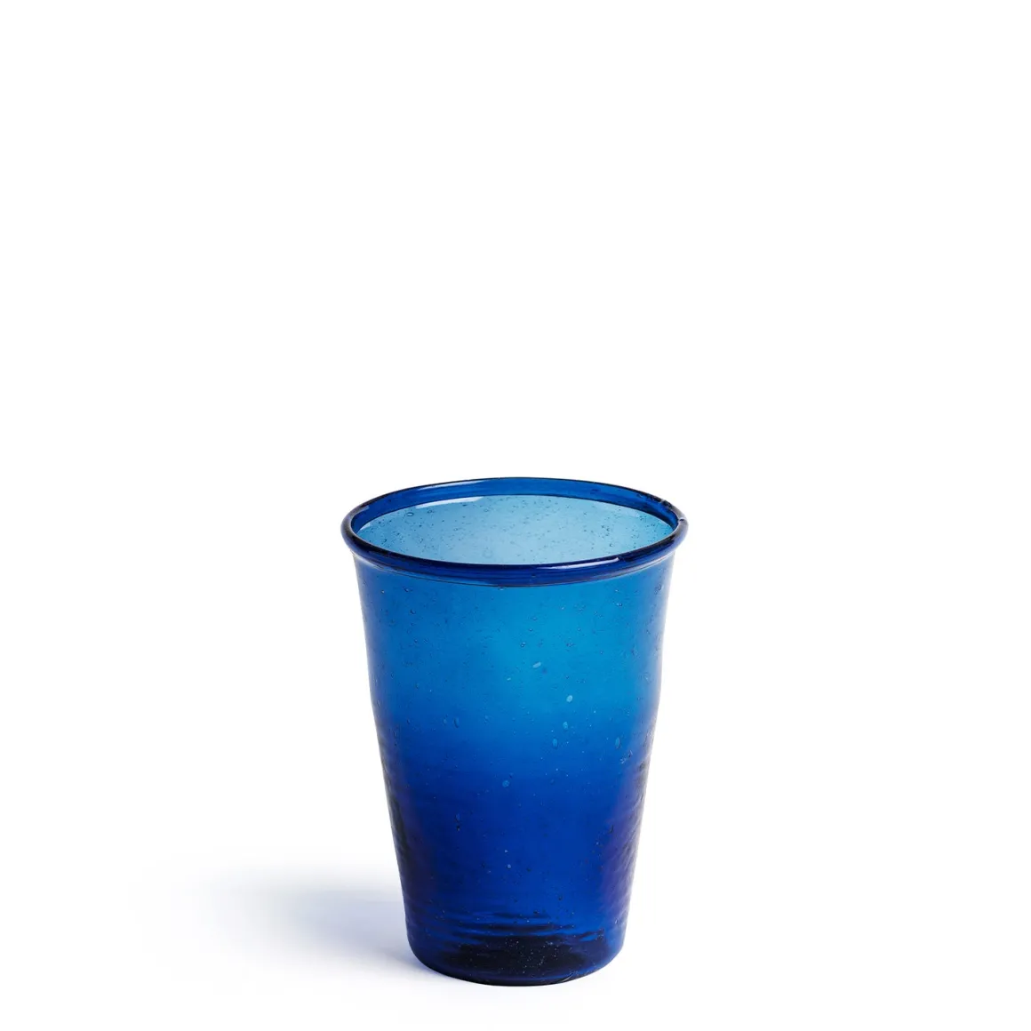 These blue bubble tumblers are made by expert glassblowers in India, using innovative techniques to achieve the unique bubble effect.