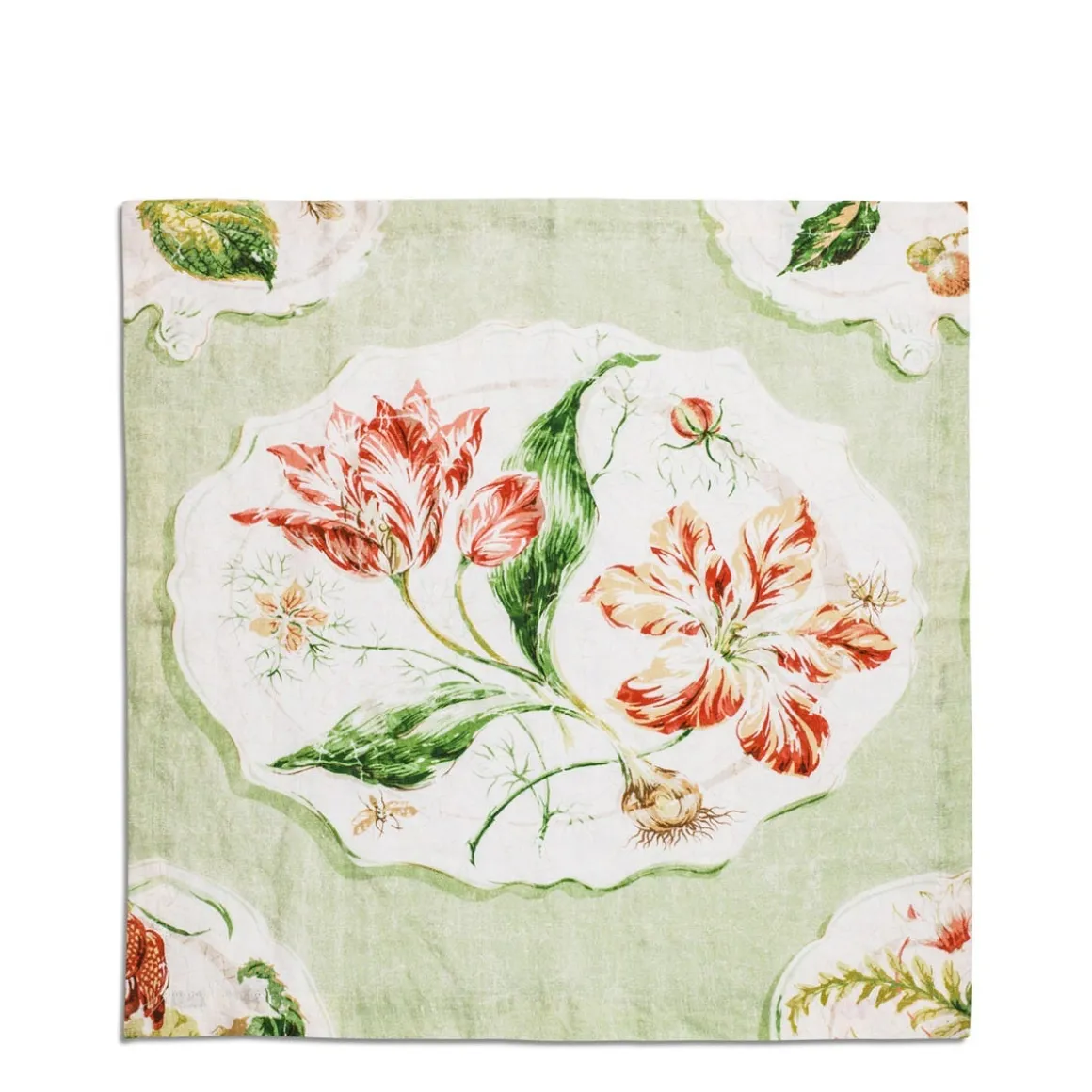 Daylesford x Colefax Quince Garden Napkin in Green With Tulips