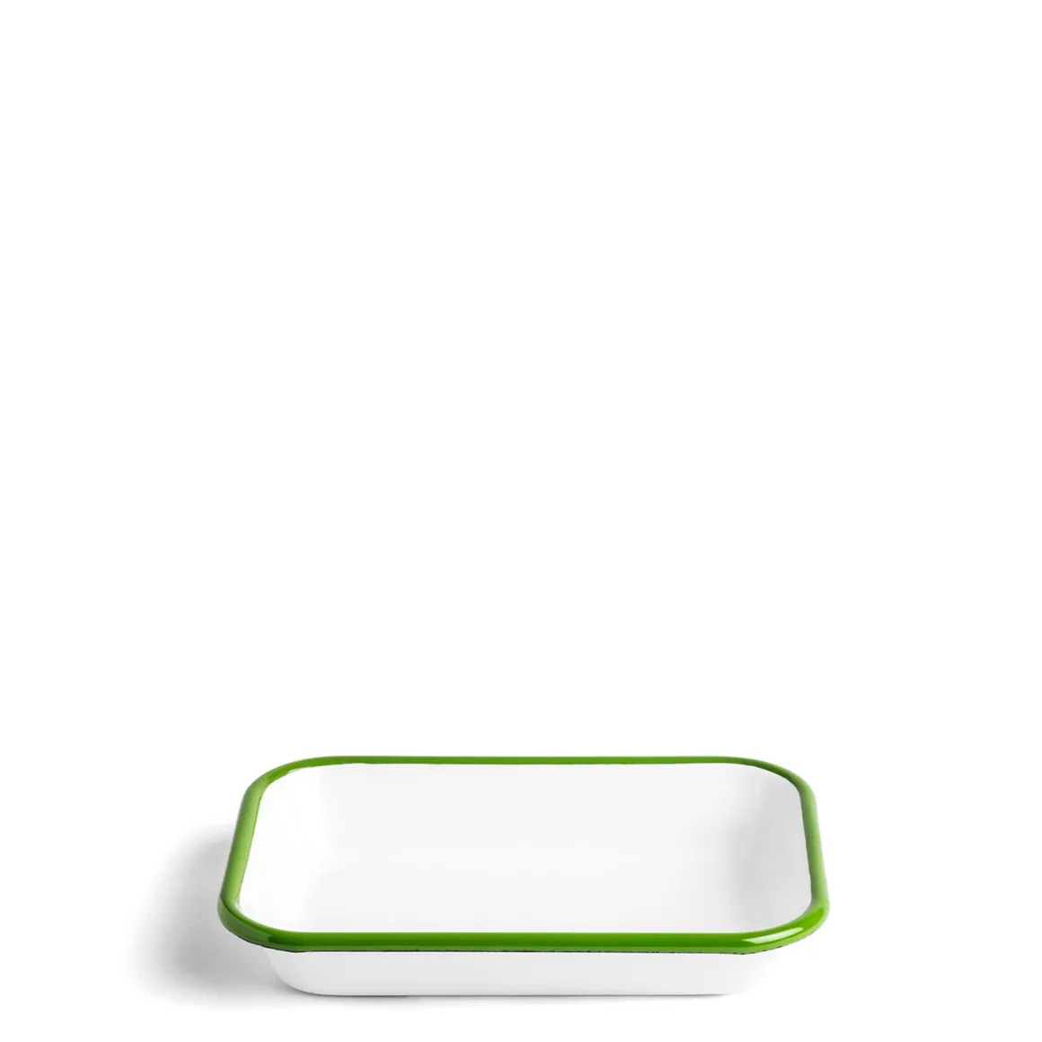 Sturdy yet stylish, this durable enamel dish can withstand the occasional bump or knock. The distinctive contrasting rim is painted by hand before the firing process and the base is stamped with the Daylesford logo.